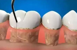 02:龈下刮治把牙龈下方的牙結石、龈下菌斑和牙周袋裏的炎性肉芽組織清除